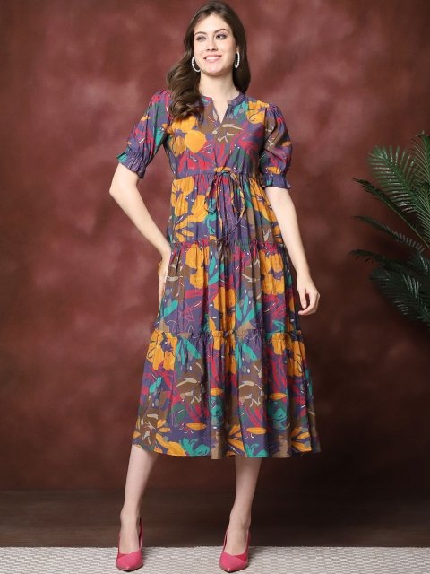 Claura Floral Print Maxi Midi Dress