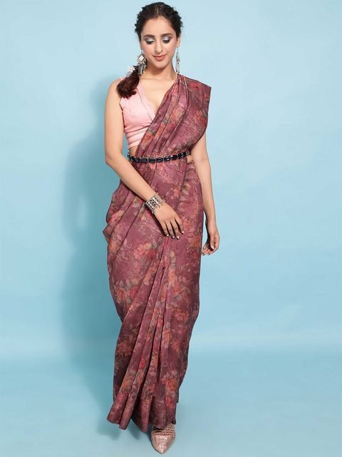 • Floral printed saree with printed border