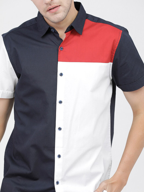 3 reviews for HIGHLANDER Men Navy Blue Slim Fit Opaque Colourblocked Casual Shirt