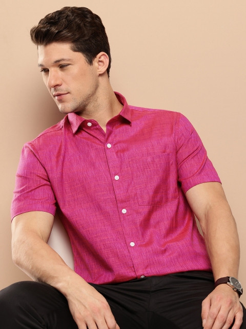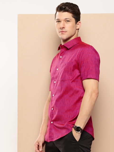Purple abstract self design opaque Casual shirt ,has a spread collar, button placket, 1 patch pocket, short regular sleeves, curved hem