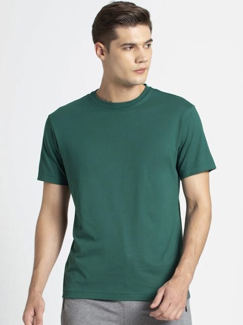 Rodzen Men Green Striped Round Neck Cotton T-shirt
