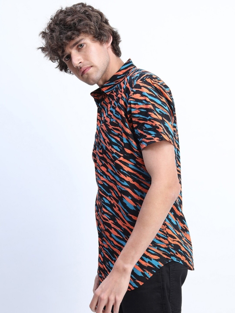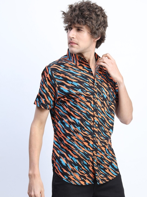 Multicoloured abstract printed opaque Casual shirt ,has a spread collar, button placket, 1 patch pocket, short regular sleeves & curved hem
