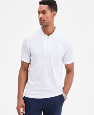 A quarter-zip placket adds sleek, smooth appeal to this textured jacquard polo shirt from Alfani.