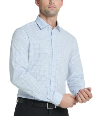 Wrinkle-free stretch fabric keeps you composed and focused throughout all the events in your calendar when you build your look around this slim-fit dress shirt from Kenneth Cole Reaction.