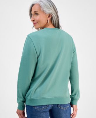 When the temps drop or the air conditioning is too intense, you can get cozy in this petite sweatshirt from Style & Co®, ornamented with subtle embroidery.