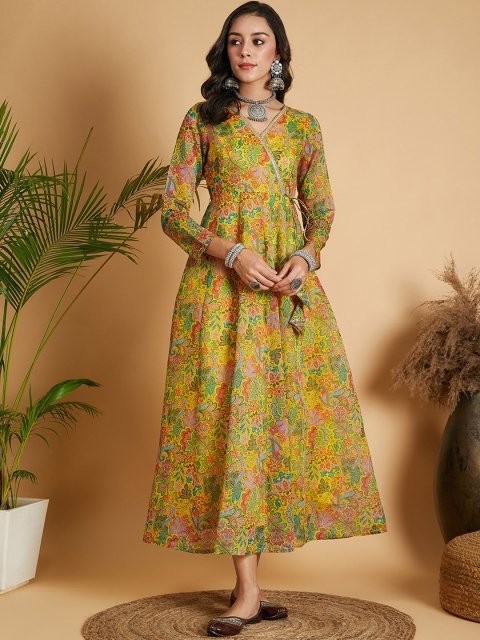 Sangria Printed Double Layered Maxi Ethnic Dresses