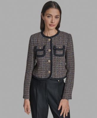 Women’s Braided-Trim Tweed Collarless Jacket