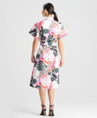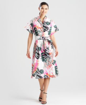 Natori ticks so many style boxes with this fresh cotton shirtdress designed with two hip pockets and a classic collar.