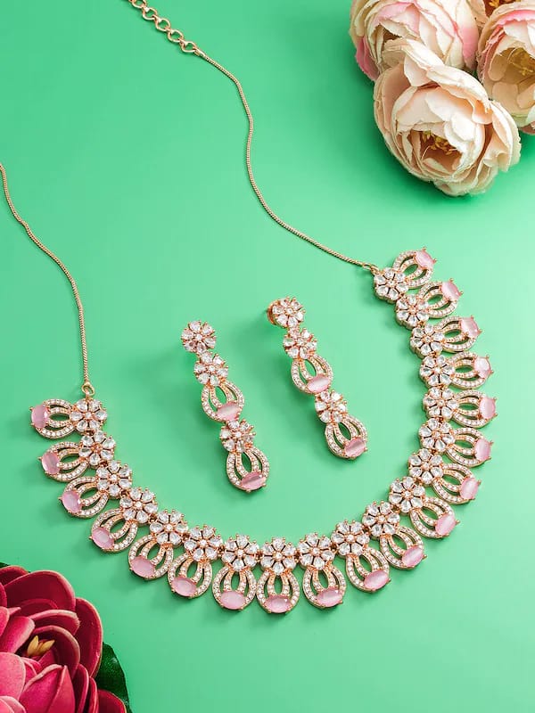 Alloy Metal Construction: The necklace and earrings are crafted from high-quality alloy metal, ensuring durability and a lustrous finish. Alloy metal is known for its versatility and ability to mimic the appearance of more expensive metals.