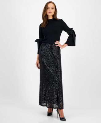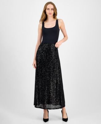 Subtly sparkling sequins lend a statement style to this iconic maxi skirt style by Anne Klein, make a mark this work week.